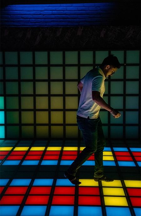 Pixel Zone es una experiencia de entretenimiento interactivo en Bogotá basada en un juego sobre un piso LED inteligente, diseñado para que los jugadores: